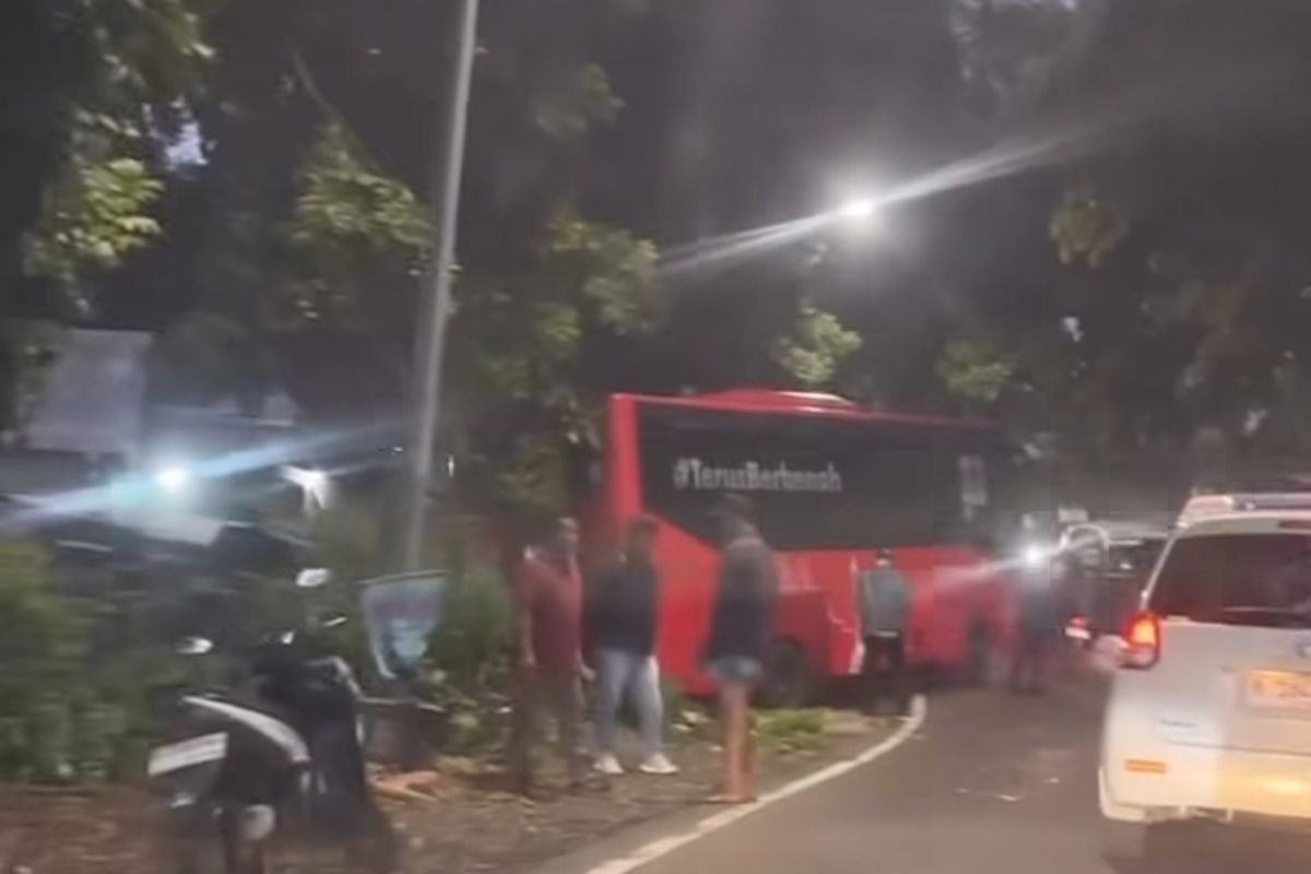 Beruntung sopir diyakini sigap membanting setir, sehingga tabrakan bisa dijauhkan dari kerumunan massa atau kendaraan lain — sehingga potensi kecelakaan masal bisa dihindarkan.
